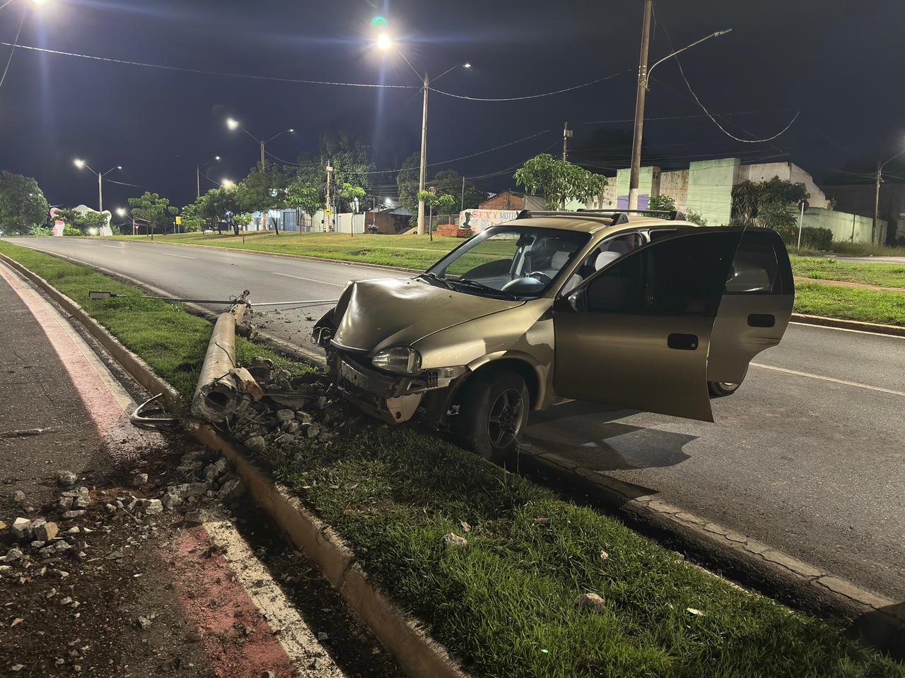 Várzea Grande — Um sinistro de trânsito sem vítimas foi registrado na madrugada desta segunda-feira (12), na Avenida Prefeito Murilo Domingos, no sentido Cristo Rei, após um condutor perder o controle do veículo e colidir violentamente contra um poste de iluminação pública.