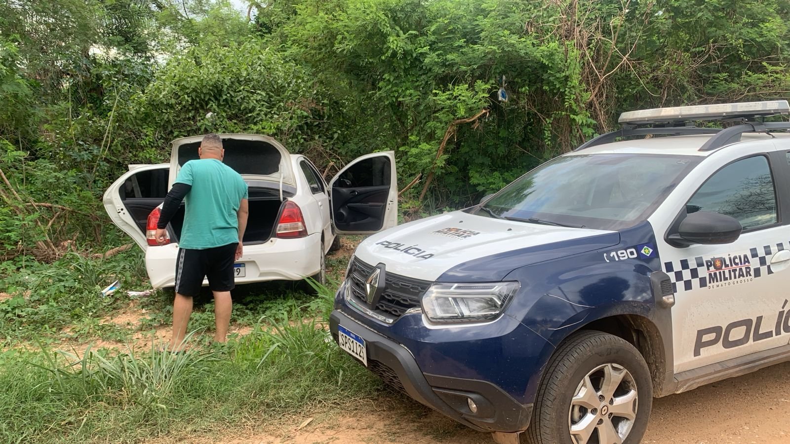 A investigação ganhou ritmo quando, já acompanhando a vítima até o Tijucal, o CIOSP informou que o GAP do 24º BPM havia localizado um veículo abandonado com as características repassadas, portas abertas e sinais de que fora deixado às pressas. No local, a vítima confirmou: era o seu Etios. O carro foi devolvido, intacto.