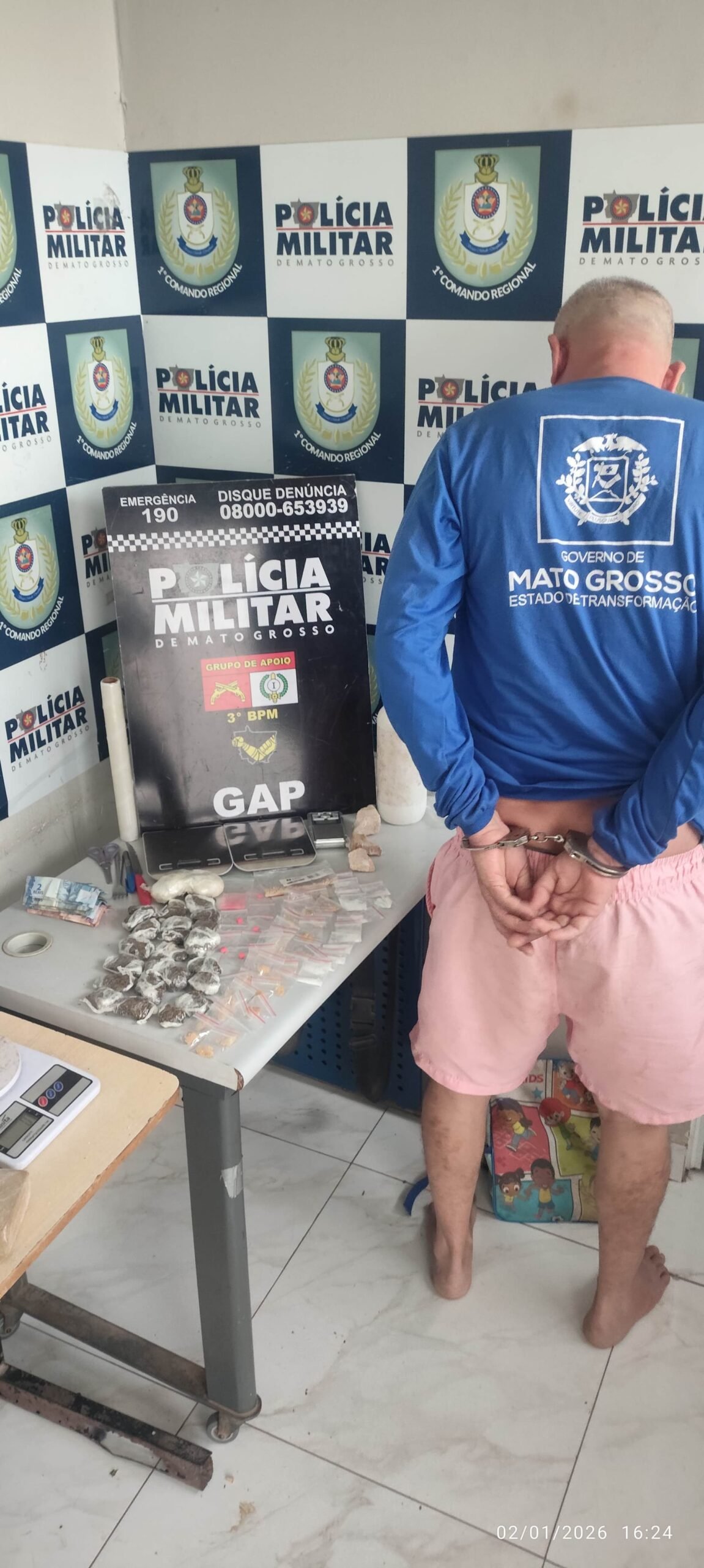 Cuiabá – A Polícia Militar de Mato Grosso iniciou o ano de 2026 reforçando a política de tolerância zero contra a criminalidade. Uma ação do Grupo de Apoio (GAP) do 3º Batalhão, vinculado ao 1º Comando Regional, resultou na prisão de um suspeito por tráfico de drogas no bairro Canjica, na capital.