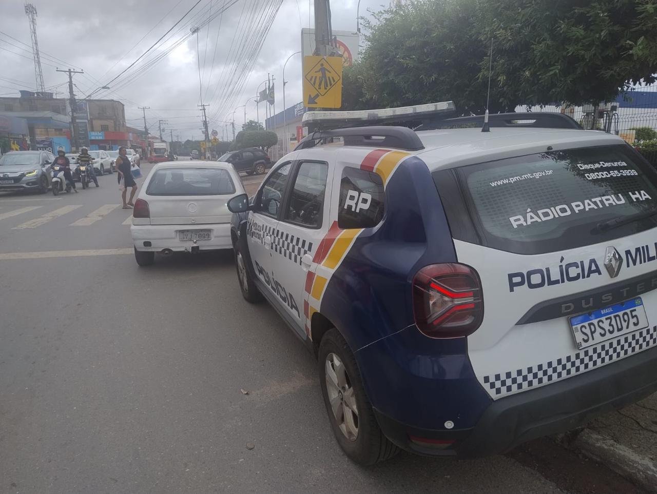 Segundo a PM, as equipes receberam informações via rádio de que um VW Gol branco estaria trafegando pela Avenida Coxipó Mirim, sentido Ponte de Ferro, com indícios claros de adulteração na placa. Um dos números havia sido modificado com tinta preta para tentar despistar a fiscalização.